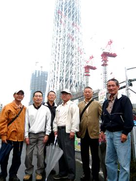 隅田川を渡り、15分位で目指すスカイツリーです。目の当たりに見るスカイツリーは迫力があり、