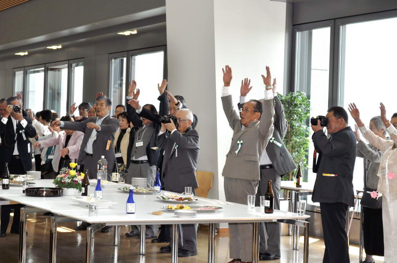 尾崎副社長を囲んでご長寿の方の記念写真撮影ののち、岩田社友会分会副会長の司会で始ま